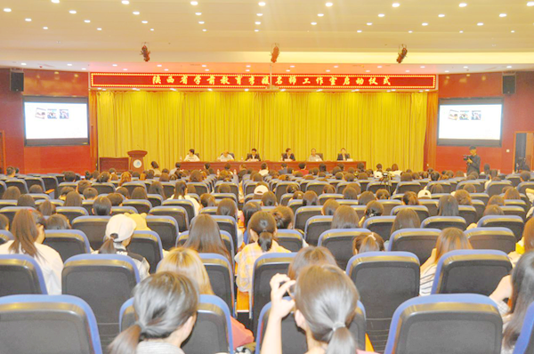 2019年4月18日,“陕西省学前教育李媛名师工作室启动仪式”在陕西学前师范学院隆重召开。陕西省教育厅教师工作处处长王彬武,教师工作处副处长朱晓冬,陕西学前师范学院校长邵必林,党委副书记朱选朝等领导,陕西师范大学李创斌、西安文理学院蔡军、陕西学前师范学院何善平教授等专家莅临此次活动,来自全省8个不同地区10位名师工作室成员以及陕西学前师范学院教育学院的300名同学参加了此次启动仪式。