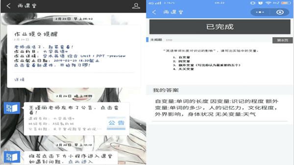 “使用雨课堂之后,学生课堂讨论参与度非常高,我也不用操心有哪些是学生不懂的,因为雨课堂都已经帮我进行了统计”,“学生与我的互动交流更加频繁深入了,下一步我计划申报教学改革项目,因为雨课堂给我保存了原汁原味的教学素材”,教育科学学院曲苒老师和外国语学院王瑾丽老师自豪地说。