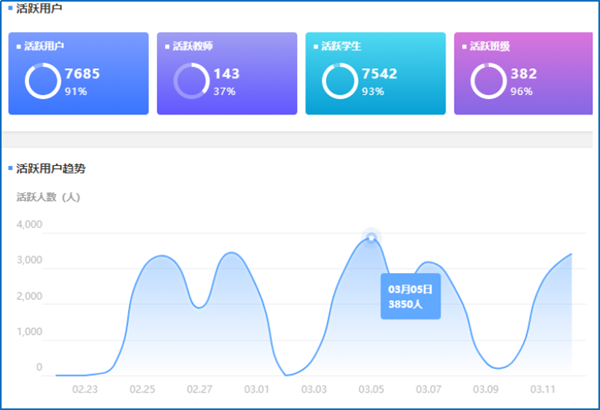 云博yunbo(中国)师生应用“雨课堂”活跃度统计图