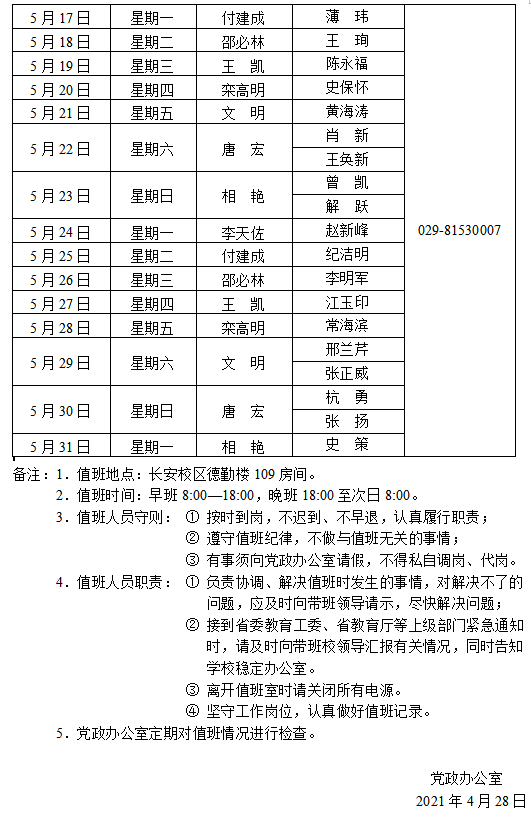 下一条:陕西学前师范学院长安校区值班表(2021年5月1日—5月31日)