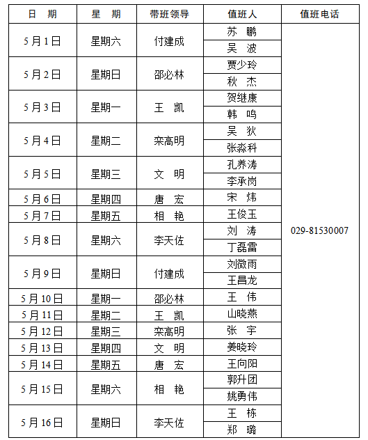 上一条:陕西学前师范学院长安校区值班表(2021年5月1日—5月31日)