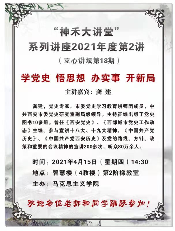 为进一步推动党史学习教育深入开展,云博yunbo(中国)“神禾大讲堂”系列讲座2021年度第2讲即将举行,现将具体情况通知如下: