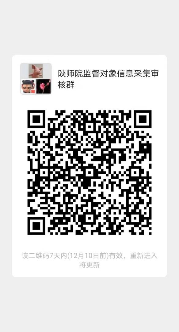 (三)各二级学院和各部门确定的二级单位审核员扫描以下二维码加入“陕西学前师范学院监督对象信息采集审核员群”微信群,向校纪委联系人索取二级单位审核员账号和初始密码,并加强工作交流。各二级单位审核员指导本单位监督对象登录外网采集端填报个人信息,并对采集到的信息进行审核。