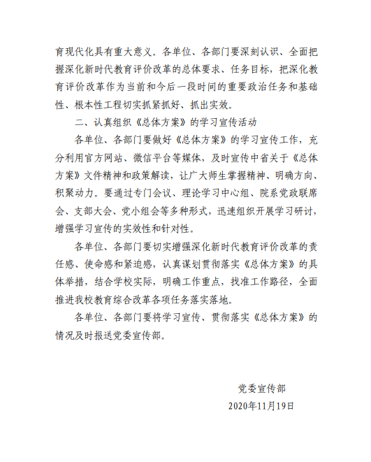 下一条:关于做好《深化新时代教育评价改革总体方案》学习宣传和贯彻落实工作的通知