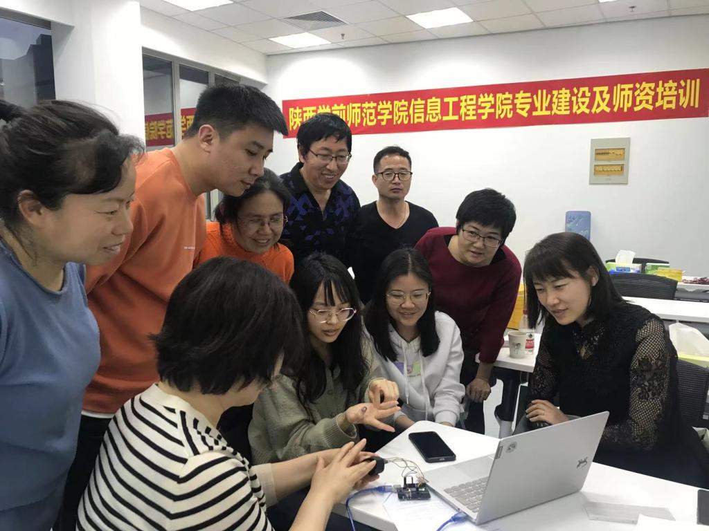 在技术培训模块中,培训老师从物联网“感联智控”全维度选择“健康监测系统”进行培训教学。底层采用Arduino UNO开发板连接心率血氧传感器,用QT作为开发环境,讲解了微控制器资源使用及设计方法、底层数据传输方式、Udp通信原理及使用、网络通信结构及其网络编程方式、应用空间设计技巧、软件架构设计、数据解析方式,指导每位老师完成了自己的心率、血氧监测系统。在培训老师的悉心指导下,参加培训的每位老师都按照要求完成了实训项目,也让我们通过完整工程实践项目的完成,加深了对“物联网”全结构设计和实现的理解,感受到了选择“有意思、有目标、有可能”的实训项目在实践教学环节的重要性。