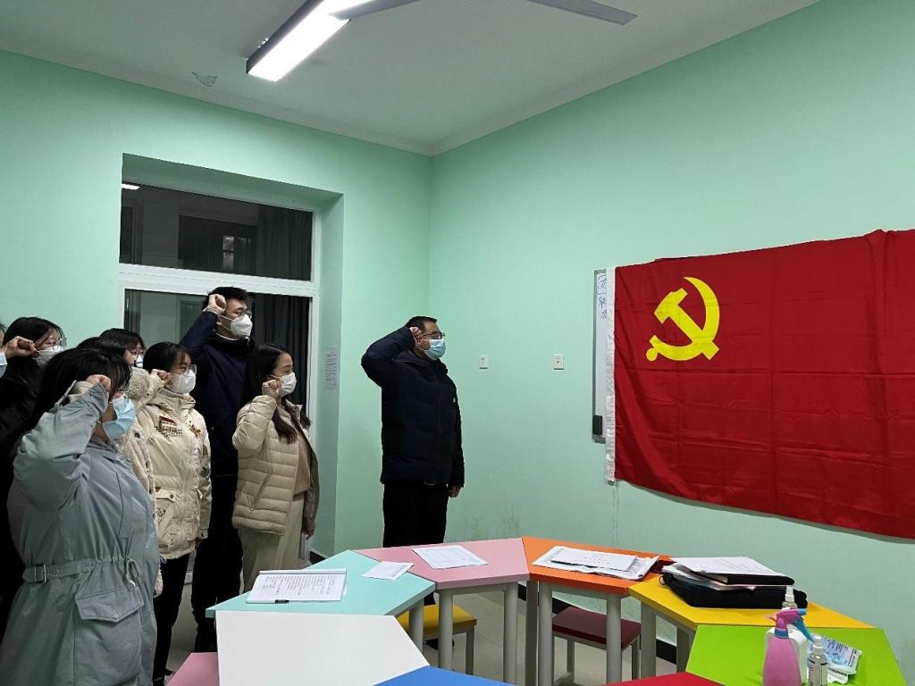 1 月 2 日,二号学生公寓临时党支部按照通知要求立即进驻二号学生公寓。针对楼宇宿舍所属二级学院较多情况, 指导教师和党支部委员会全体成员逐层逐舍摸排情况,对学生党员、党员志愿者、入党积极分子、班团干部、学生所在二级学院和需要特别关注的各种情况进行汇总登记,做到了对二号学生公寓情况清、底数明。摸清情况后,立即召开了由指导教师、党支部委员、部分党员志愿者参加的党支部成立大会。会上,党支部书记宣读了《关于在学生公寓成立临时党支部的通知》。指导教师就如何开展好封闭管理期间学生公寓管理工作提出了具体要求,她强调要发挥党支部战斗堡垒和党员先锋模范作用,协助做好所在公寓的教育教学、 日常保障、疫情防控、政策宣讲、心理疏导和矛盾化解工作, 重点是维持学生的生活秩序和加强思想教育引领。会议根据公寓楼党员队伍实际,设置三个党小组。会后,党支部书记带领参会党员重温了入党誓词。