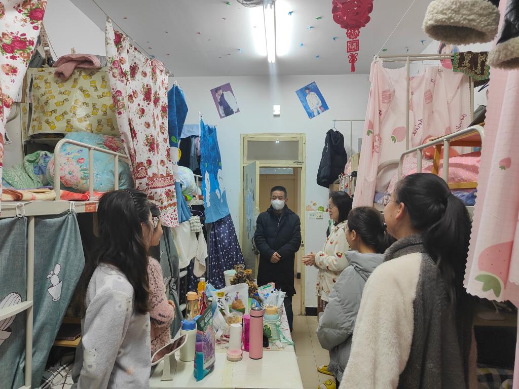 12月31日晚,2022年元旦跨年夜,教育科学学院发动在长安校区的居住的所有教师在院长办公室召开走访学生宿舍部署会议,院长朱金卫要求所有老师深入每一个宿舍,了解封控期间学生宿舍生活、学习,并做好学生思想教育和心理疏导,根据教科院学生多,楼层复杂的特点,制定了每一位老师负责一个年级一个楼层,成立了教师、辅导员、宿舍舍长、学生党员为主体的疫情防控网格化管理工作组,各组及时沟通,线上协调,做好学生日常管理,每日核酸检测等各项工作。