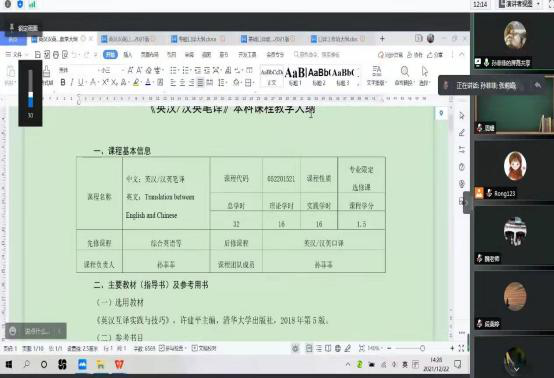 2021年12月22日下午,外国语学院专业系部在云端平台召开了英语专业、翻译专业课程“教学大纲编写”专题推进会,外国语学院张慧军院长、系部主任、专业系部全体教师参加了此次会议,会议由外国语学院副院长张莉娟主持。