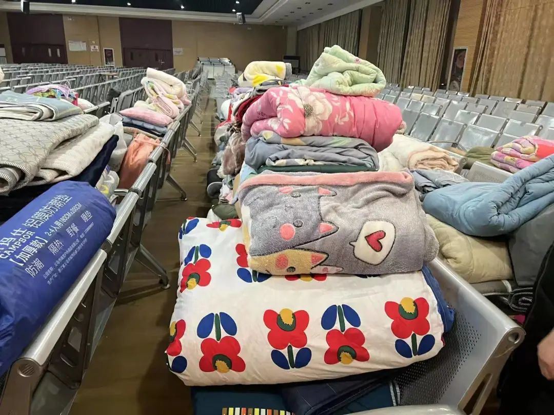 23日清晨,几张食堂打地铺就寝的图片让师院人泪目。开放学生活动中心作为后勤保障人员临时居所,向残特奥会学生演员征集防潮地垫的消息一经转发,全校师生立刻行动起来。被褥、瑜伽垫、行军床、抱枕、发热贴,防潮御寒的物资在短短两小时内堆满了大半个学生活动中心。志愿者们将长条座椅合并组合,铺上捐赠的被褥,保障人员立刻就有了就寝的床。此时此刻,无论天气多么寒冷,都因为师院人的“双向奔赴”而温暖至极。
