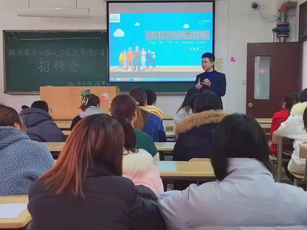 为切实做好2022届毕业生就业工作,大力构建毕业生与用人单位的交流桥梁,经济与管理学院于2021年12月1日下午分别在博文楼B座401教室、博文楼C2阶梯教室举办了陕西英才云谷人力资源有限公司、陕西西星财务管理有限公司专场招聘宣讲会。学院2022届人力资源管理专业、会计专业以及财务管理专业学生参加了本次专场宣讲会。