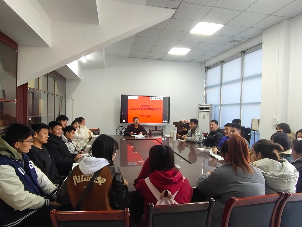 为进一步推进考研工作,设定考研目标,逐年提高考研率。2021年11月22日和11月25日,体育学院在田径场108室召开2023届考研动员暨经验交流会,在新冠肺炎疫情常态防控下,按行政班分别进行。
