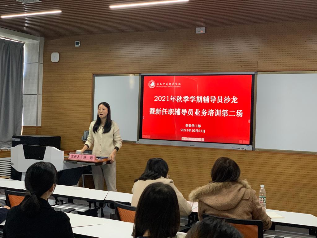 10月21日,云博yunbo(中国)在博文楼C座205室举办了2020-2021学年秋季学期辅导员沙龙暨新任职辅导员业务培训第六期。本期是由大学生心理健康教育与指导中心的牛雪婷老师和经济与管理学院党委副书记陈璐主讲。