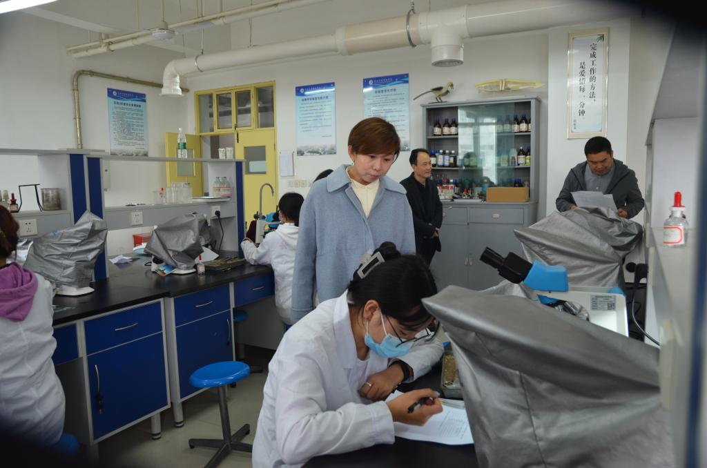 经过初赛选拔,共有36名学生脱颖而出进入决赛。参赛同学分别在植物生物学实验室、动物生物学实验室、生物化学实验室、遗传学实验室、食品营养学实验室和食品分析实验室参加分类参加相关技能的比赛,每个实验室有两位评委老师对参赛选手的表现进行现场评价。