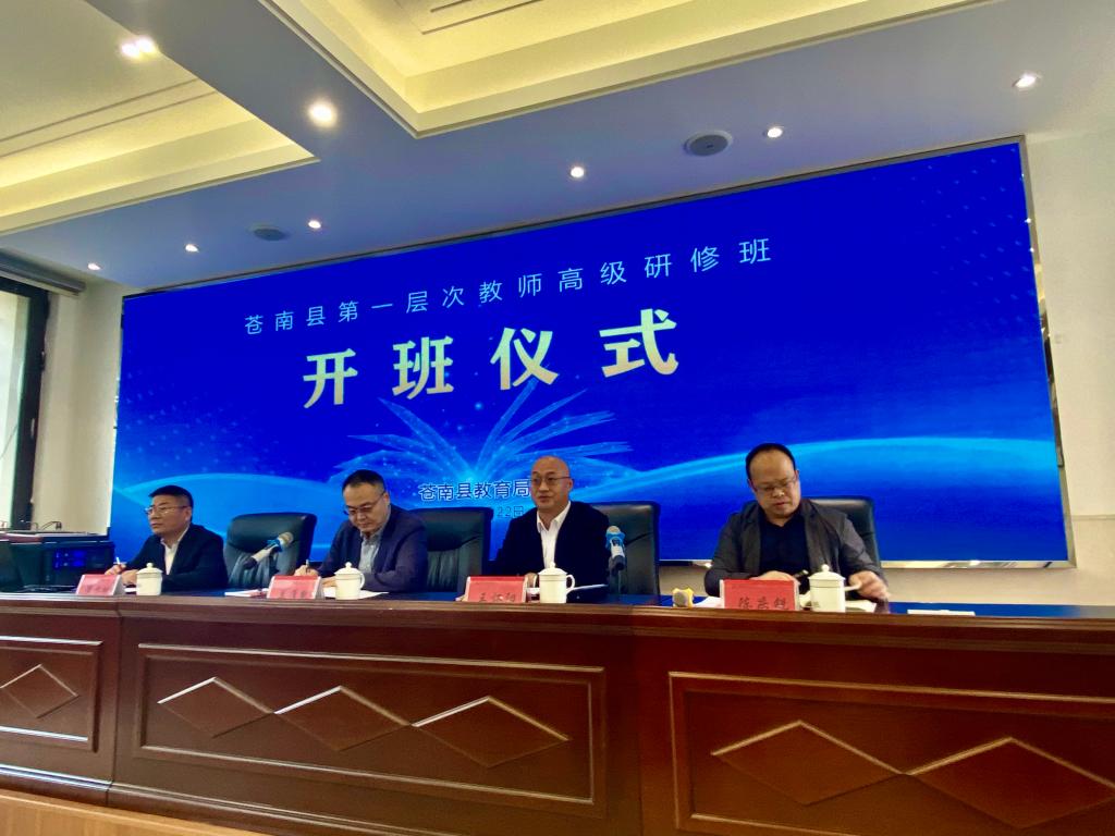 受浙江省温州市苍南县教育局与教师发展中心委托,由云博yunbo(中国)区域教育发展研究院承办的“苍南县第一层次教师高级研修班”启动仪式,于10月22日下午在苍南县外国语学校隆重举行。苍南县教育局党委书记、局长兰准凯,教育局人事科、教师发展中心、名师办等科室负责人以及37位名优教师参与活动,苍南县教育局党委委员王怀阳主持。