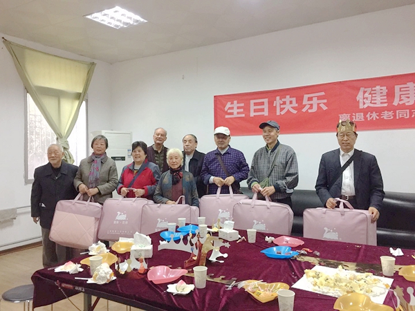 活动最后,离退处为每位寿星送上了精美的生日礼物,并合影留念。活动结束,离退处党政领导及第一支部书记前往90岁寿星赵家秀老师家进行慰问看望。